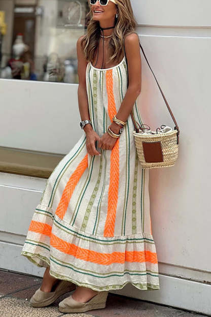 Happy Sunday Linen Blend Ethnic Print A-line Cami Maxi Dress